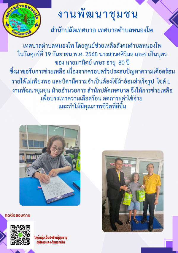 การช่วยเหลือส่งมอบแพมเพิสผู้ใหญ่แก่ผู้พิการ ราย นายมานิตย์ เกษร
