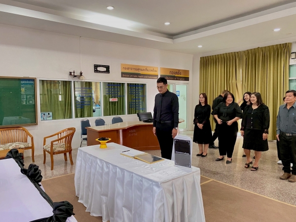 เทศบาลตำบลหนองโพ จัดตั้งโต๊ะหมู่ประดิษฐานพระฉายาลักษณ์สมเด็จพระนางเจ้าสิริกิติ์ พระบรมราชินีนาถ พระบรมราชชนนีพันปีหลวง สำหรับลงนามแสดงความไว้อาลัย