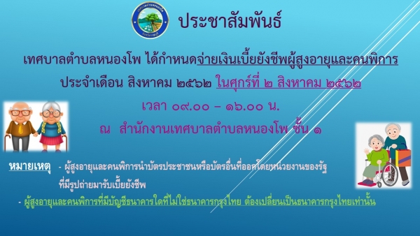 การรับเบี้ยยังชีพและเบี้ยคนพิการ เขตเทศบาลตำบลหนองโพ ประจำเดือน สิงหาคม 2562