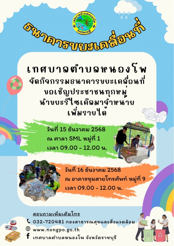 เทศบาลตำบลหนองโพ ขอเชิญประชาชนทุกหมู่นำขยะรีไซเคิลมาจำหน่ายเพิ่มรายได้