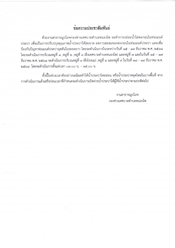 ปล่อยน้ำไล่ตะกอนท่อเมนต์ประปา