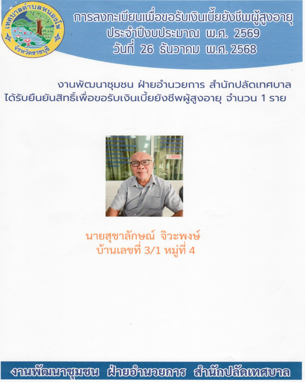การลงทะเบียนผู้สูงอายุราย นายสุชาลักษณ์ จิวะพงษ์