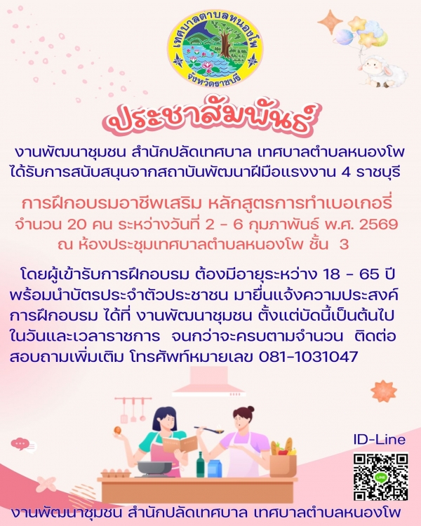 การฝึกอบรมอาชีพเสริม(หลักสูตรการทำเบเกอรี่)วันที่ 2 - 6 กุมภาพันธ์ 2569