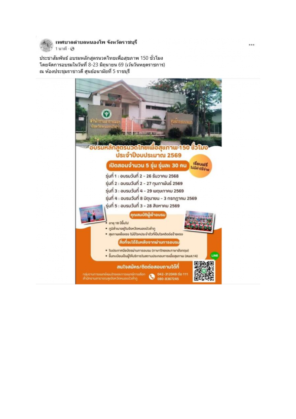 ประชาสัมพันธ์การอบรมหลักสูตรนวดไทยเพื่อสุขภาพ 150 ชั่วโมง