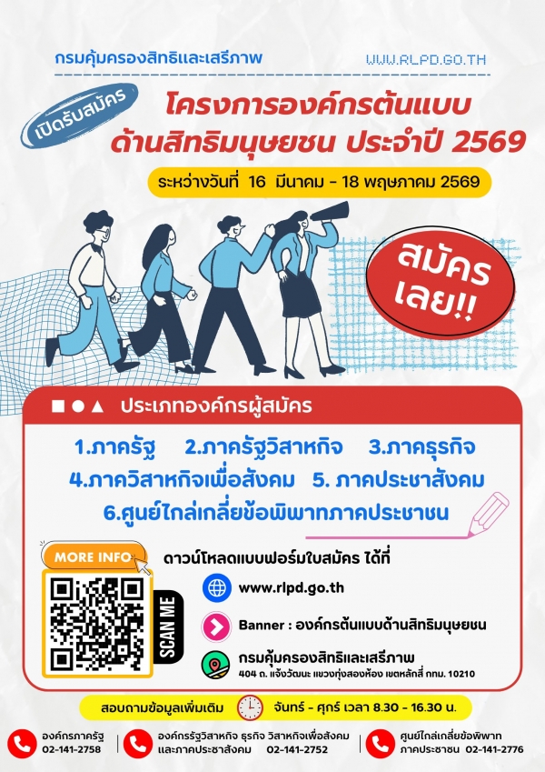 ประชาสัมพันธ์โครงการองค์กรต้นแบบด้านสิทธิมนุษยชน ประจำปี ๒๕๖๙