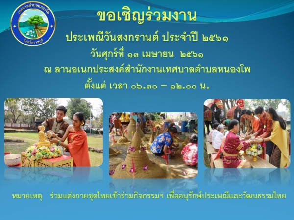 ขอเชิญชวน ร่วมโครงการประเพณีสงกรานต์ ประจำปีงบประมาณ พ.ศ.๒๕๖๑