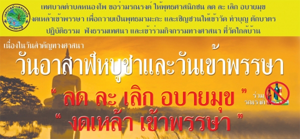 เนื่องในวันสำคัญทางศาสนาวันอาสาฬหบูชา ขึ้น 15 ค่ำ เดือน 8 ซึ่งตรงกับวันที่ 5 กรกฎาคม 2563 และวันเข้าพรรษา แรม 1 ค่ำ เดือน 8 ซึ่งตรงกับวันที่ 6 กรกฎาคม 2563 เทศบาลตำบลหนองโพ ขอเชิญชวนให้ เด็ก เยาวชน และประชาชน ร่วมกันสืบสานและตระหนักถึงวันสำคัญของวันอาสาฬหบูชา และวันเข้าพรรษา ทำบุญ ตักบาตร ปฏิบัติธรรม ฟังธรรมเทศนา เจริญภาวนา รักษาศีล งดเหล้าเข้าพรรษา ลด ละ เลิก อบายมุข และเข้าร่วมกิจกรรมทางพุทธศาสนา เพื่อถวายเป็นพุทธบูชา ในวันสำคัญทางศาสนา