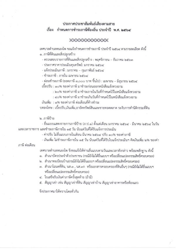 กำหนดการชำระภาษีประจำปี 2564