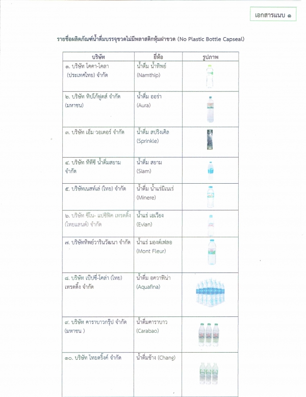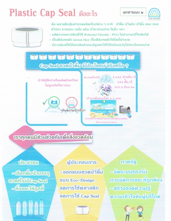 เรื่อง ขอเชิญชวนให้ประชาชนในพื้นที่เลิกใช้พลาสติกหุ้มฝาขวดน้ำดื่ม โดยการเลือกซื้อน้ำดื่มที่ไม่มีพลาสติกหุ้มฝาขวด การผลิตหรือสั่งผลิตน้ำดื่มบรรจุขวดโดยไม่ใช้พลาสติกหุ้มฝาขวด เพื่อลดปริมาณขยะและแก้ไขปัญหาขยะพลาสติกที่ส่งผลกระทบต่อสิ่งแวดล้อม