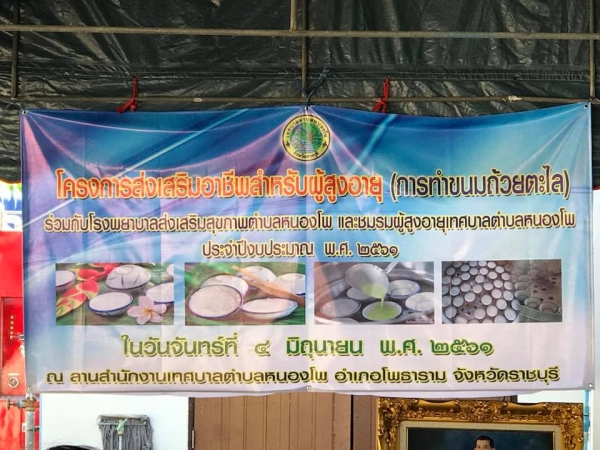โครงการส่งเสริมอาชีพสำหรับผู้สูงอายุ(การทำขนมถ้วยตะไล)ร่วมกับโรงพยาบาลส่งเสริมสุขภาพตำบลหนองโพและชมรมผู้สูงอายุเทศบาลตำบลหนองโพ ประจำปีงบประมาณ พ.ศ. 2561