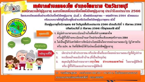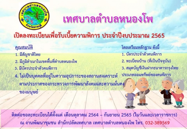 ขอให้ผู้สูงอายุและผู้พิการมาขึ้นทะเบียนรับเงินเบี้ยยังชีพ ประจำปีงบประมาณ พ.ศ.2565