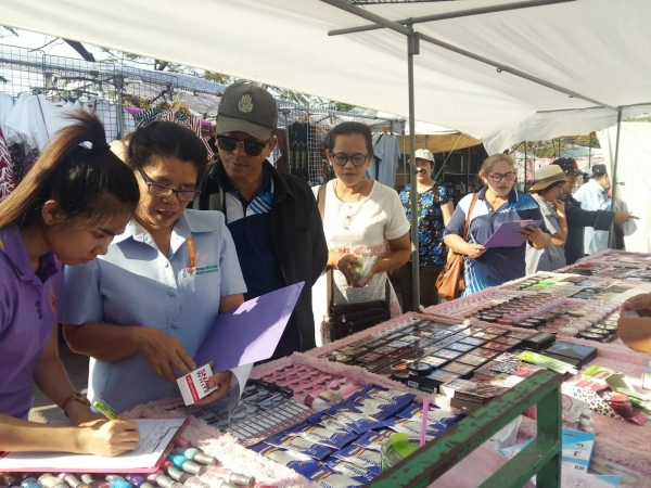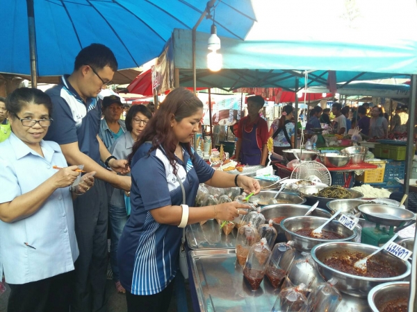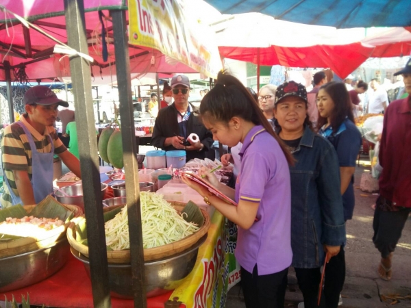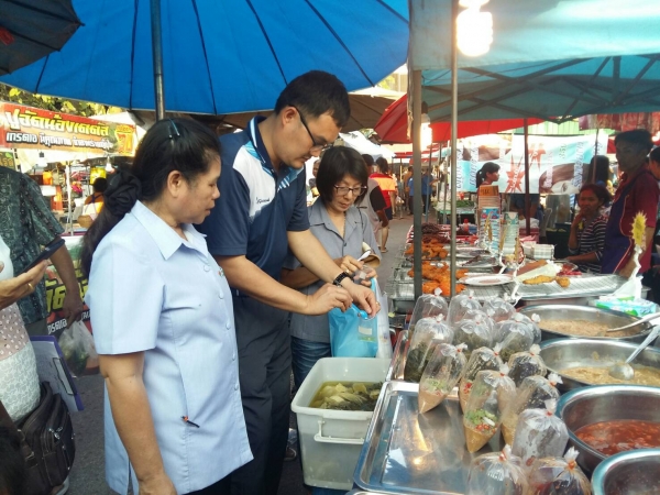 เทศบาลตำบลหนองโพร่วมกับโรงพยาบาลส่งเสริมสุขภาพตำบลหนองโพและอสม. ลงพื้นที่เก็บตัวอย่างอาหาร เพื่อตรวจสารปนเปื้อน และตรวจสอบการจำหน่ายครีมอันตรายที่ตลาดนัดเปิดท้ายหนองโพ