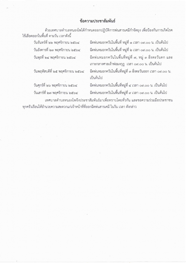 เทศบาลตำบลหนองโพ ได้กำหนดออกปฏิบัติการพ่นสารเคมีกำจัดยุง เพื่อป้องกันการเกิดโรคไข้เลือดออกในพื้นที่ เทศบาลตำบลหนองโพ