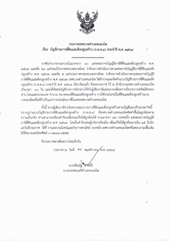 บัญชีรายการที่ดินและสิ่งปลูกสร้าง (ภ.ด.ส.3) ประจำปี พ.ศ.2564