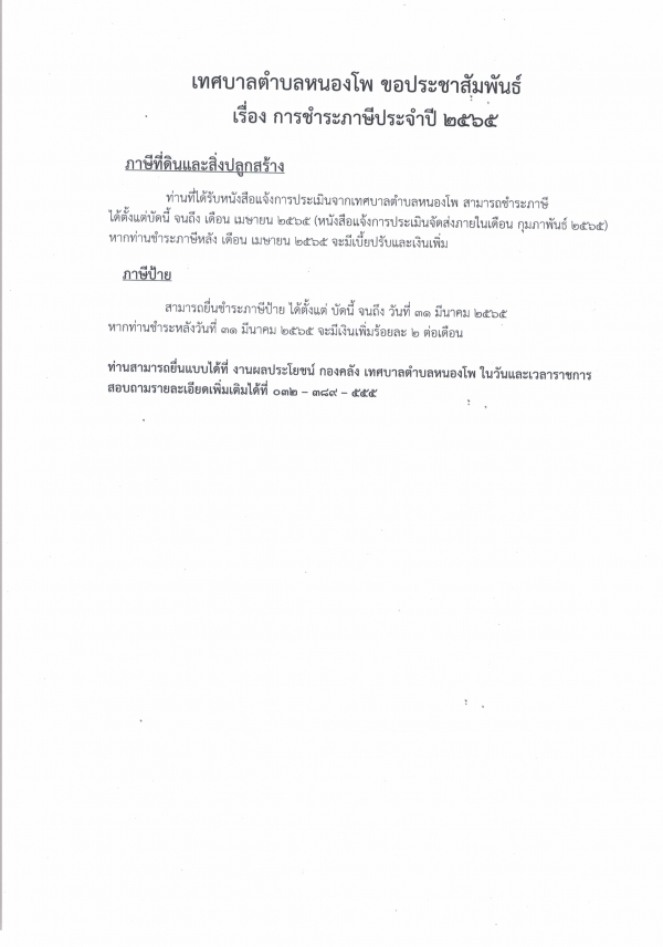 เรื่อง การชำระภาษีประจำปี 2565