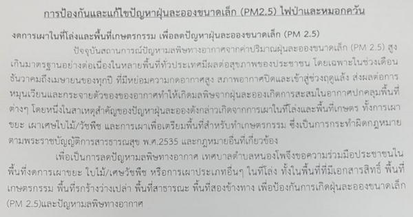 การป้องกันและแก้ไขปัญหาฝุ่นละอองขนาดเล็ก (PM2.5) ไฟป่าและหมอกควัน