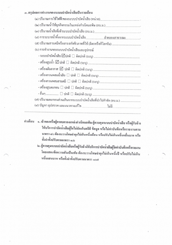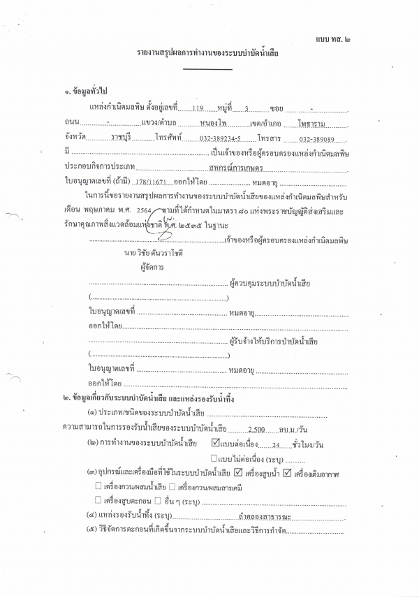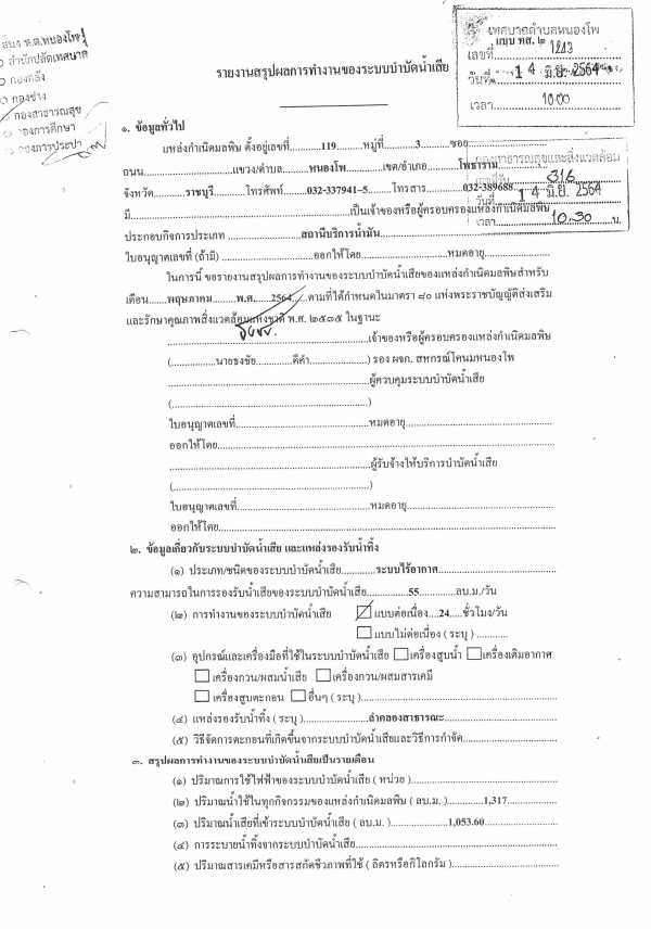 รายงานสรุปผลการทำงานของระบบบำบัดนำ้เสีย ในพื้นที่เทศบาลตำบลหนองโพ