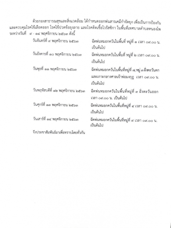 ประชาสัมพันธ์การฉีดพ่นสารเคมีกำจัดยุงลาย