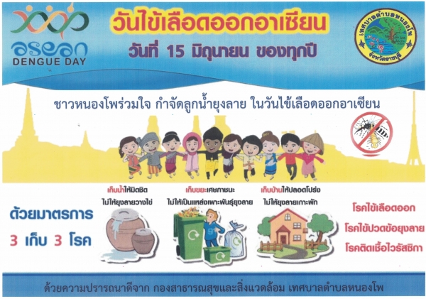 วันที่ 15 มิถุนายน 2565 ของทุกปี เป็นวันไข้เลือดออกอาเซียน ขอประชาสัมพันธ์เชิญชวนชาวหนองโพร่วมใจ กำจัดยุงลาย