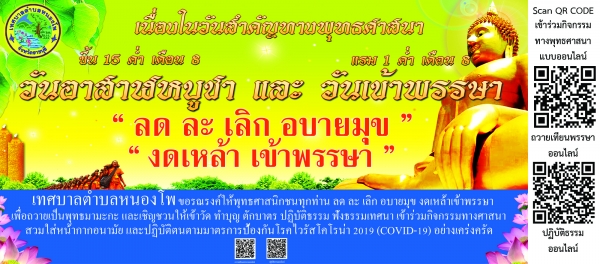 เทศบาลตำบลหนองโพ ขอร่วมส่งเสริม เชิญชวนให้ เด็ก เยาวชน และประชาชนในเขตเทศบาลตำบลหนองโพ มีส่วนร่วมในการส่งเสริม สืบสานประเพณีวันสำคัญทางศาสนา และทำนุบำรุงพระพุทธศาสนาที่เป็นศาสนาประจำชาติไทย ใช้ชีวิตวิถีใหม่ New Normal ในการเข้าร่วมกิจกรรมทางพุทธศาสนาแบบออนไลน์ ทำบุญ ตักบาตร ปฏิบัติธรรม ฟังธรรมเทศนา รักษาศีล ลด ละ เลิก อบายมุข งดเหล้า เข้าพรรษา เพื่อถวายเป็นพุทธบูชา
