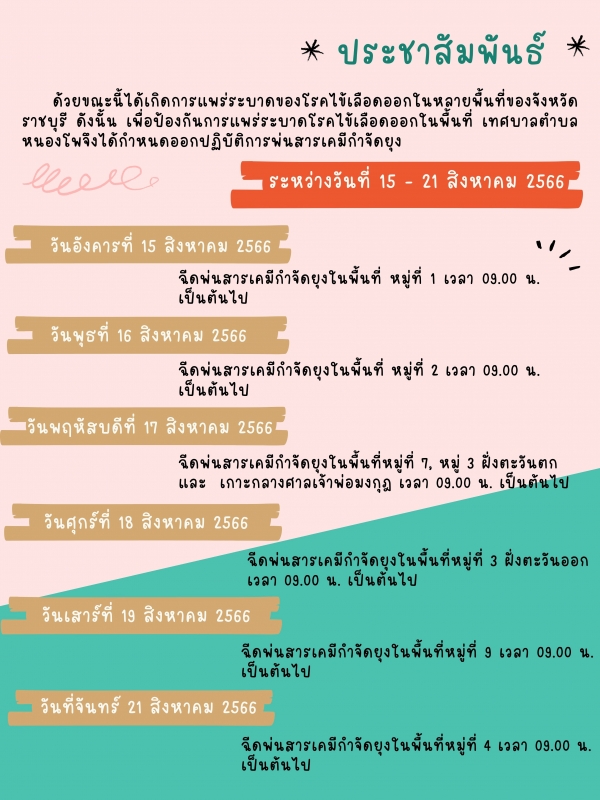 กำหนดออกปฏิบัติการพ่นสารเคมีกำจัดยุ่ง ระหว่างวันที่ 15 - 21 สิงหาคม 2566