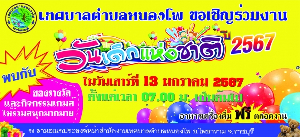 ด้วยเทศบาลตำบลหนองโพ ได้เล็งเห็นความสำคัญของเด็กเยาวชนในเขตเทศบาลตำบลหนองโพและพื้นที่ใกล้เคียง จึงได้จัดงานวันเด็กแห่งชาติ ประจำปีงบประมาณ พ.ศ.2567 ในวันเสาร์ที่ 13 มกราคม 2567 ณ ลานอเนกประสงค์หน้าสำนักงานเทศบาลตำบลหนองโพ อำเภอโพธาราม จังหวัดราชบุรี ตั้งแต่เวลา 7.00 น. เป็นต้นไป