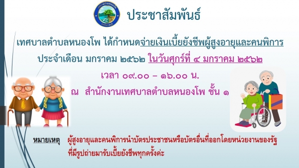 การรับเบี้ยยังชีพและเบี้ยคนพิการ เขตเทศบาลตำบลหนองโพ ประจำเดือน มกราคม 2562