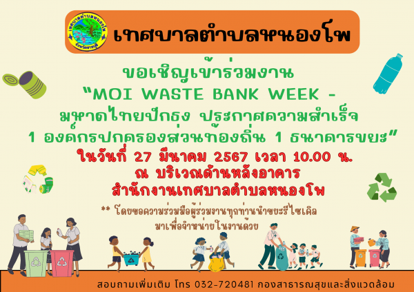 "MOI WASTE BANK WEEK - มหาดไทยปักธง ประกาศความสำเร็จ องค์กรปกครองส่วนท้องถิ่น 1 ธนาคารขยะ"