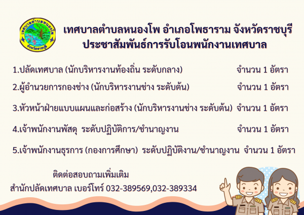 เทศบาลตำบลหนองโพ ประชาสัมพันธ์ เรื่อง การรับโอนพนักงานพนักงานเทศบาล