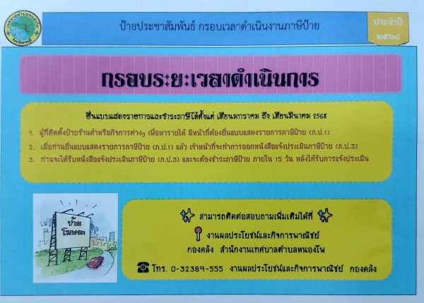 กรอบระยะเวลาดำเนินการภาษีป้าย ประจำปี พ.ศ.2568