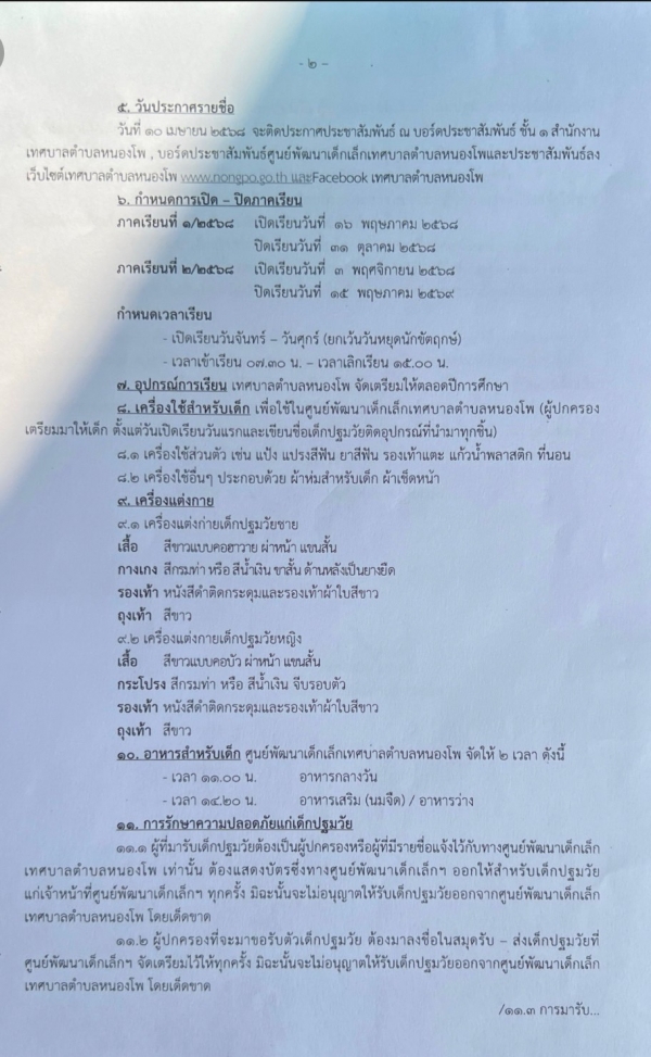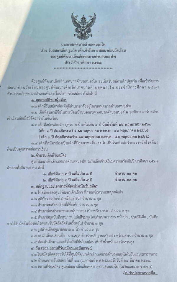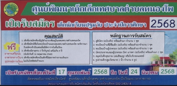 ศูนย์พัฒนาเด็กเล็กเทศบาลตำบลหนองโพ เปิดรับสมัครเด็กปฐมวัยประจำปีการศึกษา 2568