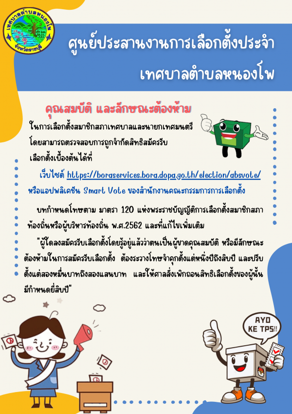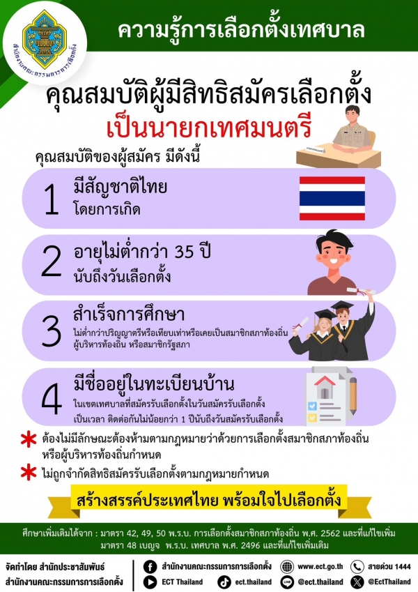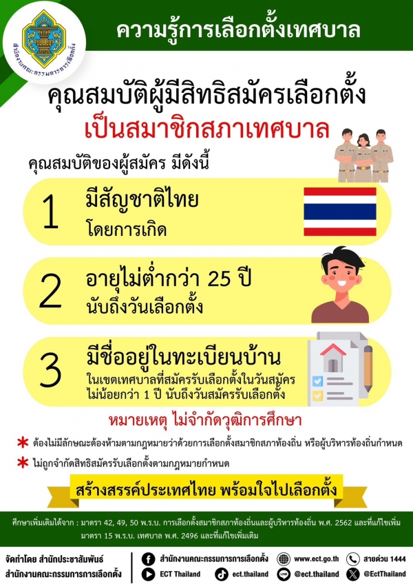 ในการเลือกตั้งสมาชิกสภาเทศบาลและนายกเทศมนตรี โดยสามารถตรวจสอบการถูกจำกัดสิทธิสมัครรับเลือกตั้งเบื้องต้นได้ที่
