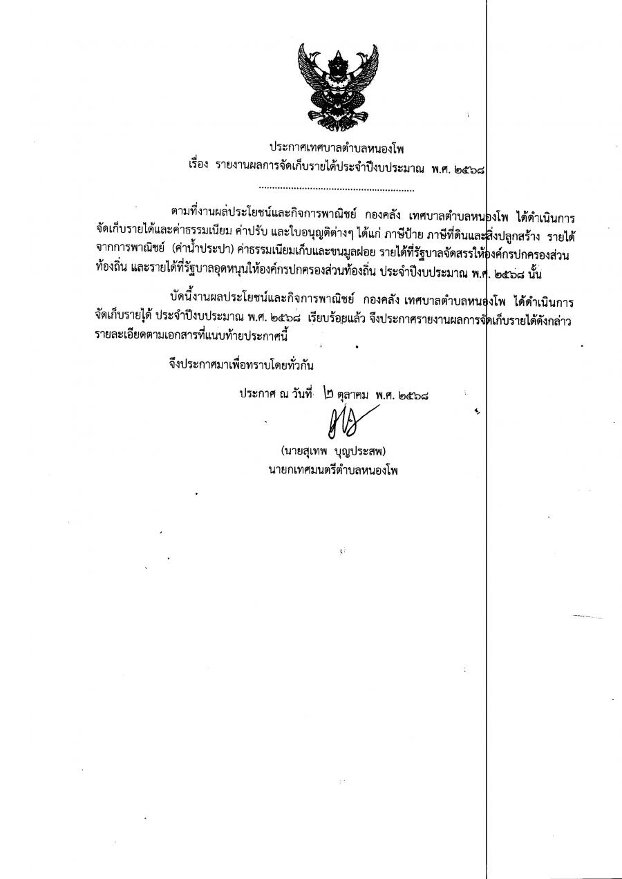 รายงานผลการจัดเก็บรายได้ประจำปีงบประมาณ 2568 ตุลาคม-กันยายน.pdf