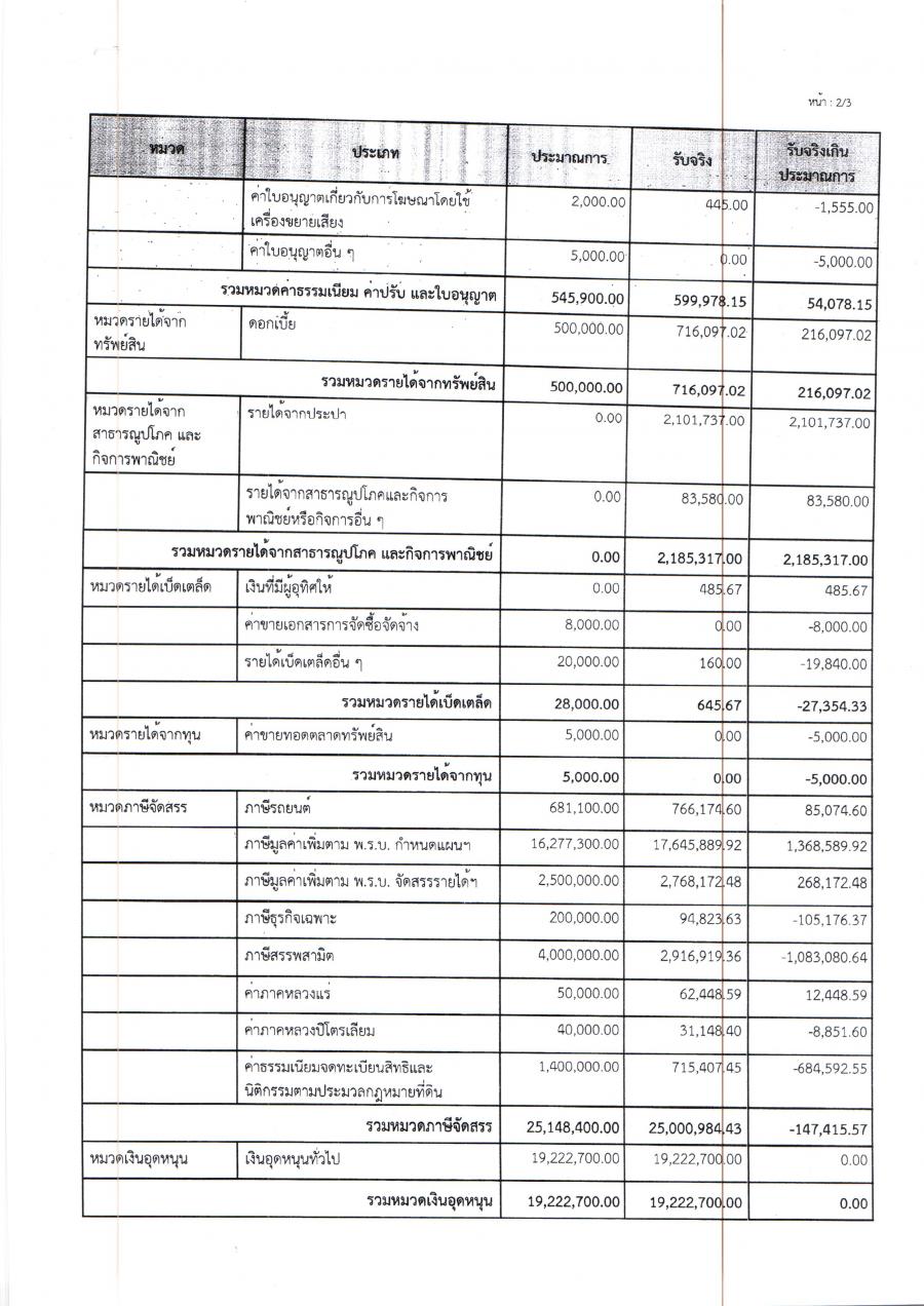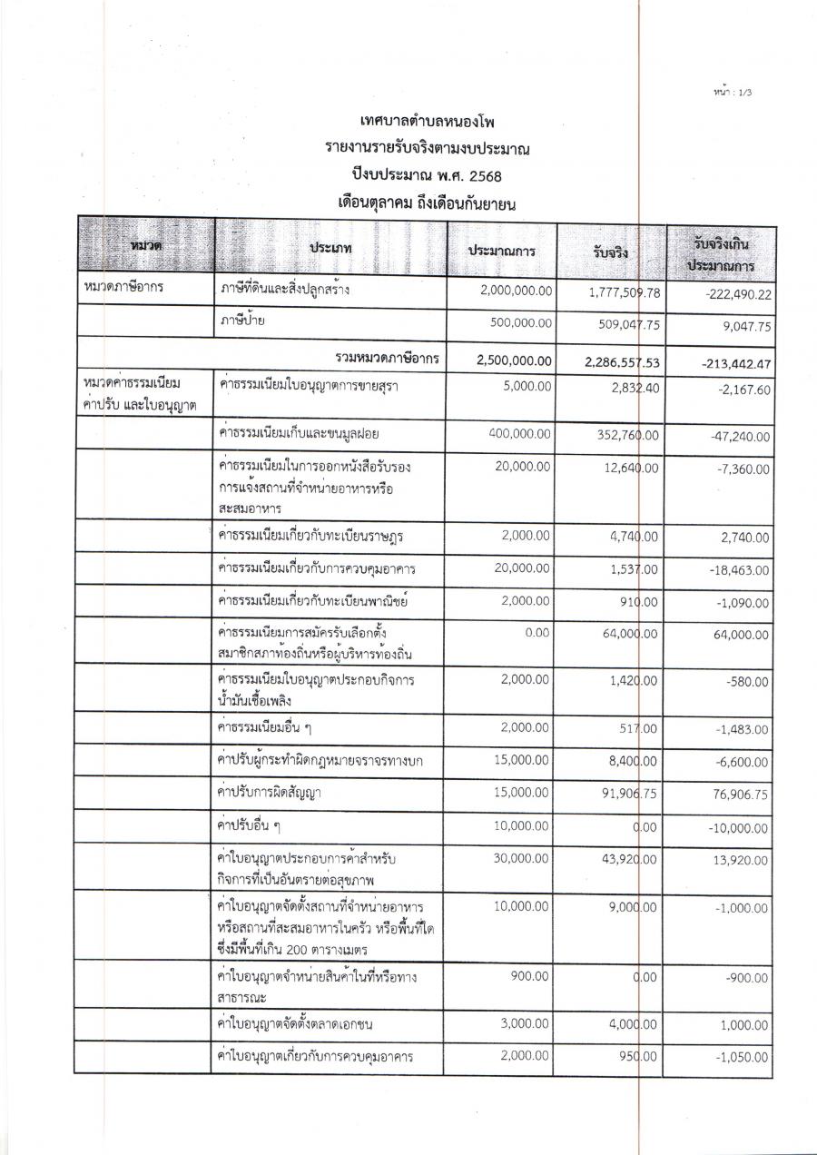 รายงานผลการจัดเก็บรายได้ประจำปีงบประมาณ 2568 เดือนตุลาคม ถึงเดือนกันยายน