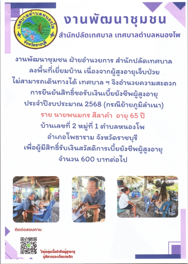 ประชาสัมพันธ์การยืนยันสิทธิ์ขอรับเงินเบี้ยยังชีพผู้สูงอายุ นายพนมกร สีลาคำ