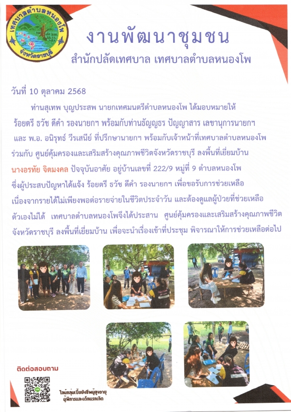 ลงพื้นที่เยี่ยมบ้าน นางอรทัย จิตมงคล กรณีเขียนคำร้องขอความช่วยเหลือเงินสงเคราะห์