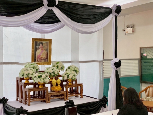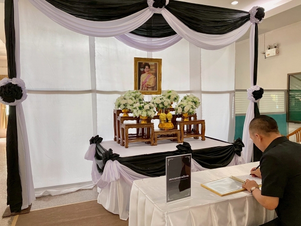 จัดตั้งโต๊ะหมู่ประดิษฐานพระฉายาลักษณ์สมเด็จพระนางเจ้าสิริกิติ์ พระบรมราชินีนาถ พระบรมราชชนนีพันปีหลวง สำหรับลงนามแสดงความไว้อาลัย