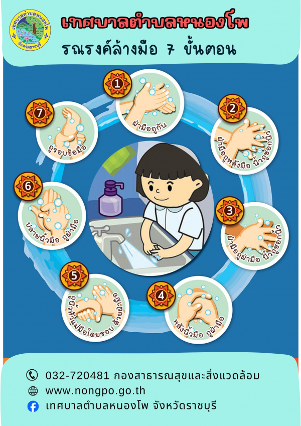 เทศบาลตำบลหนองโพ รณรงค์ล้างมือ 7 ขั้นตอน เนื่องในวันล้างมือโลก เพื่อป้องกันและหยุดยั้งการแพร่กระจายของเชื้อโรค