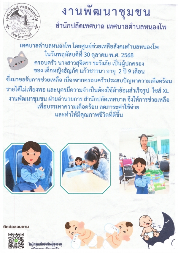 การช่วยเหลือผ้าอ้อมสำเร็จรูปเด็ก เด็กหญิงธัญภัค แก้วชาวนา