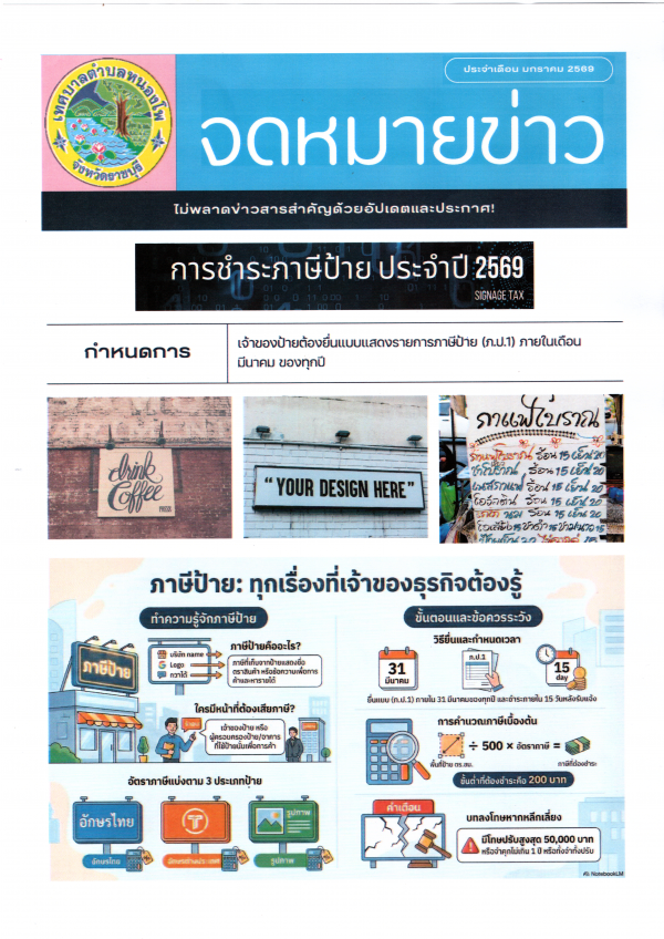 ประชาสัมพันธ์ จดหมายข่าวจากเทศบาล เกี่ยวกับภาษีป้าย