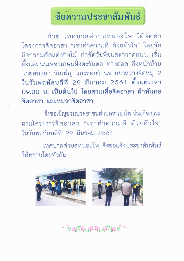 ขอเชิญชวน ร่วมกิจกรรมโครงการจิตอาสา "เราทำความดี ด้วยหัวใจ"