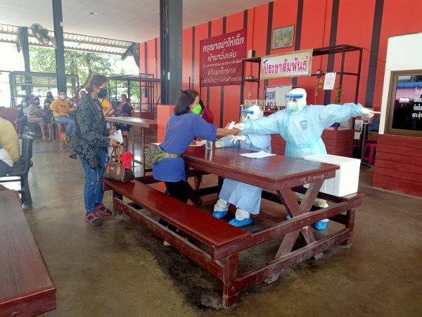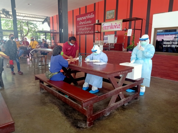 ตรวจคัดกรองหาเชื้อไวรัสโคโรนา 2019 ให้แก่พ่อค้า แม่ค้า ในตลาดเปิดท้ายหนองโพ