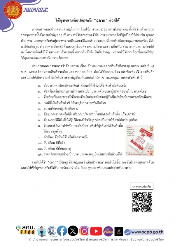 1 เรื่อง ใช้ถุงพลาสติกปลอดภัย "ฉลาก" ช่วยได้