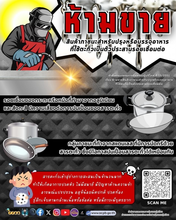 3 เรื่อง ห้ามขายสิ้นค้า ภาชนะสำหรับปรุงอาหารหรือบรรจุอาหารที่ใช้ตะกั่วเป็นตัวประสานรอยเชื่อม