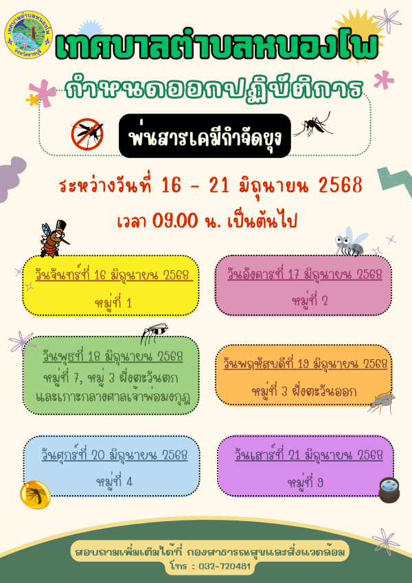 เทศบาลตำบลหนองโพ ประชาสัมพันธ์กำหนดออกปฏิบัติการพ่นสารเคมีกำจัดยุง